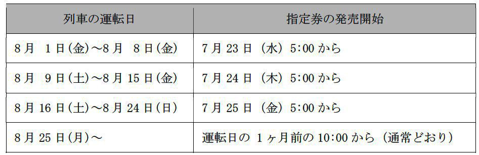 臨時列車の運転計画は、7月28日(月)頃にお知らせします。